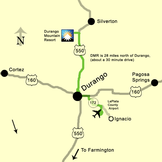(DMR) From Durango Mountain Resort entrance on HWY 550 to Brimsone Condos